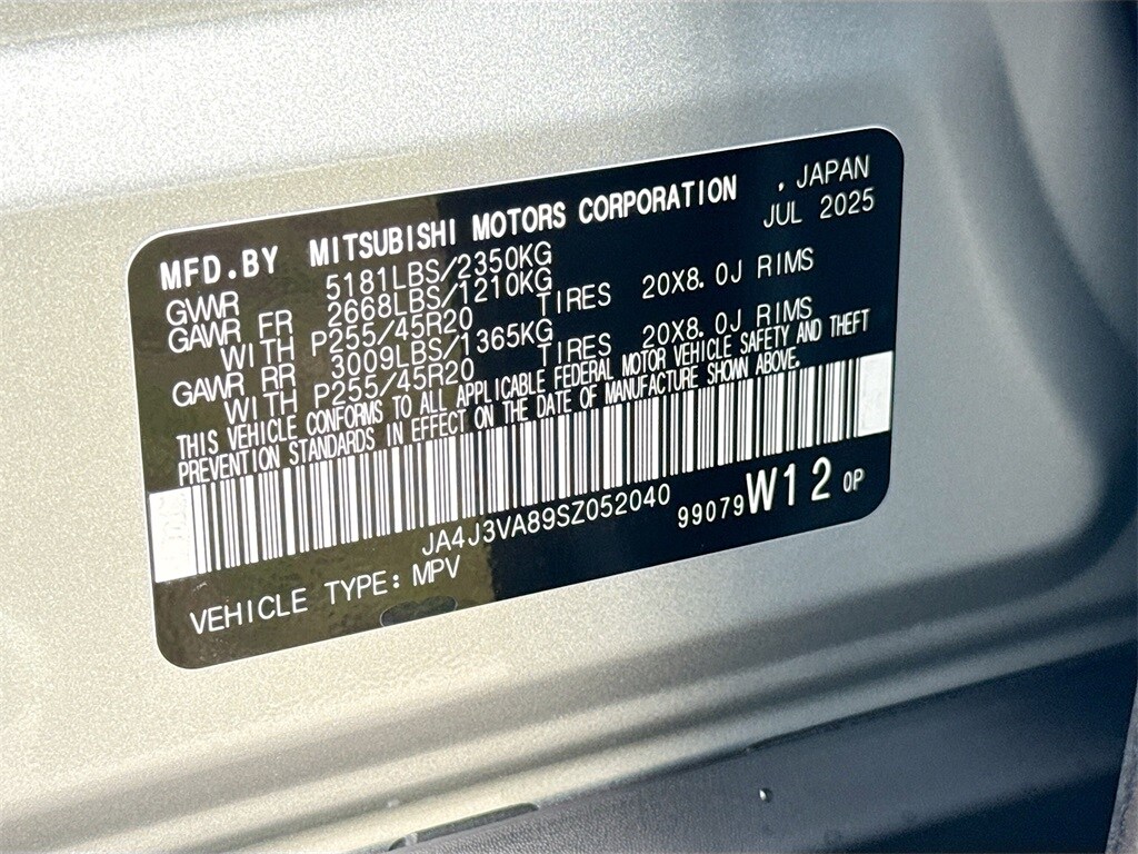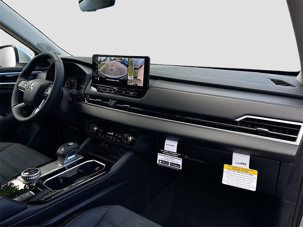 3rd row seats: split-bench, 4-Wheel Disc Brakes, 8 Speakers, ABS brakes, Air Conditioning, Alloy wheels, AM/FM radio: SiriusXM, Android Auto & Apple CarPlay, Auto High-beam Headlights, Auto-dimming Rear-View mirror, Automatic temperature control, Brake assist, Bumpers: body-color, Driver door bin, Driver vanity mirror, Dual front impact airbags, Dual front side impact airbags, Electronic Stability Control, Emergency communication system: Mitsubishi Connect w/ 24-month trial, Exterior Parking Camera Rear, Four wheel independent suspension, Front anti-roll bar, Front Bucket Seats, Front Center Armrest w/Storage, Front dual zone A/C, Front fog lights, Front reading lights, Fully automatic headlights, Garage door transmitter: HomeLink, Heated door mirrors, Heated Front Bucket Seats, Heated front seats, Illuminated entry, Knee airbag, Leather Shift Knob, Leather steering wheel, Low tire pressure warning, Navigation System, Occupant sensing airbag, Outside temperature display, Overhead airbag, Overhead console, Panic alarm, Passenger door bin, Passenger vanity mirror, Power door mirrors, Power driver seat, Power Liftgate, Power steering, Power windows, Radio data system, Radio: AM/FM 12.3" Navigation w/Smartphone-Link, Rain sensing wipers, Rear anti-roll bar, Rear seat center armrest, Rear side impact airbag, Rear window defroster, Rear window wiper, Reclining 3rd row seat, Remote keyless entry, Security system, Speed control, Speed-Sensitive Wipers, Split folding rear seat, Spoiler, Steering wheel mounted audio controls, Synthetic Leather Seating Surfaces, Tachometer, Telescoping steering wheel, Tilt steering wheel, Traction control, Trip computer, Turn signal indicator mirrors, Variably intermittent wipers, and Wheels: 20" Two-Tone Alloy. Price includes: $2500 - Customer Cash. Exp. 01/05/2026 $2,000 Trade Assistance - Dealer Provided Rebate.