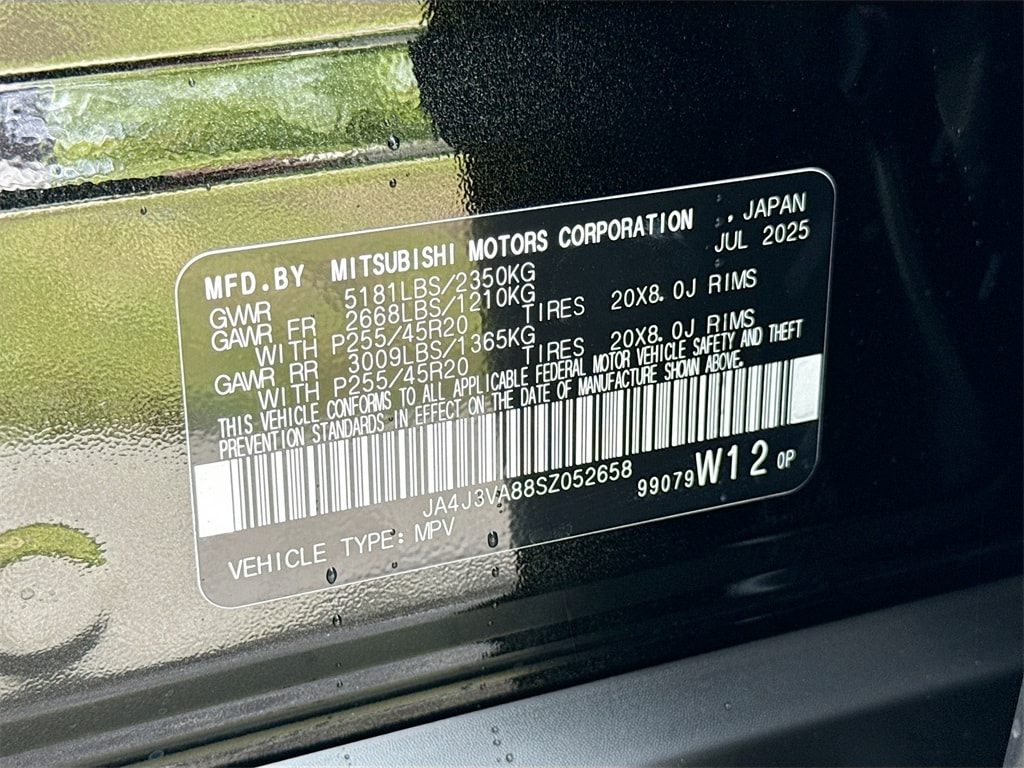 3rd row seats: split-bench, 4-Wheel Disc Brakes, 8 Speakers, ABS brakes, Air Conditioning, Alloy wheels, AM/FM radio: SiriusXM, Android Auto & Apple CarPlay, Auto High-beam Headlights, Auto-dimming Rear-View mirror, Automatic temperature control, Brake assist, Bumpers: body-color, Driver door bin, Driver vanity mirror, Dual front impact airbags, Dual front side impact airbags, Electronic Stability Control, Emergency communication system: Mitsubishi Connect w/ 24-month trial, Exterior Parking Camera Rear, Four wheel independent suspension, Front anti-roll bar, Front Bucket Seats, Front Center Armrest w/Storage, Front dual zone A/C, Front fog lights, Front reading lights, Fully automatic headlights, Garage door transmitter: HomeLink, Heated door mirrors, Heated Front Bucket Seats, Heated front seats, Illuminated entry, Knee airbag, Leather Shift Knob, Leather steering wheel, Low tire pressure warning, Navigation System, Occupant sensing airbag, Outside temperature display, Overhead airbag, Overhead console, Panic alarm, Passenger door bin, Passenger vanity mirror, Power door mirrors, Power driver seat, Power Liftgate, Power steering, Power windows, Radio data system, Radio: AM/FM 12.3" Navigation w/Smartphone-Link, Rain sensing wipers, Rear anti-roll bar, Rear seat center armrest, Rear side impact airbag, Rear window defroster, Rear window wiper, Reclining 3rd row seat, Remote keyless entry, Security system, Speed control, Speed-Sensitive Wipers, Split folding rear seat, Spoiler, Steering wheel mounted audio controls, Synthetic Leather Seating Surfaces, Tachometer, Telescoping steering wheel, Tilt steering wheel, Traction control, Trip computer, Turn signal indicator mirrors, Variably intermittent wipers, and Wheels: 20" Two-Tone Alloy. Price includes: $2500 - Customer Cash. Exp. 01/05/2026 $2,000 Trade Assistance - Dealer Provided Rebate.