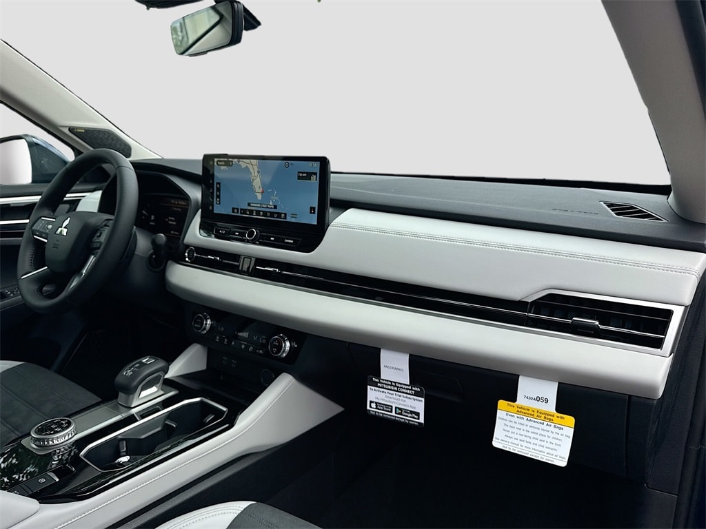 3rd row seats: split-bench, 4-Wheel Disc Brakes, 8 Speakers, ABS brakes, Air Conditioning, Alloy wheels, AM/FM radio: SiriusXM, Android Auto & Apple CarPlay, Auto High-beam Headlights, Auto-dimming Rear-View mirror, Automatic temperature control, Brake assist, Bumpers: body-color, Driver door bin, Driver vanity mirror, Dual front impact airbags, Dual front side impact airbags, Electronic Stability Control, Emergency communication system: Mitsubishi Connect w/ 24-month trial, Exterior Parking Camera Rear, Four wheel independent suspension, Front anti-roll bar, Front Bucket Seats, Front Center Armrest w/Storage, Front dual zone A/C, Front fog lights, Front reading lights, Fully automatic headlights, Garage door transmitter: HomeLink, Heated door mirrors, Heated Front Bucket Seats, Heated front seats, Illuminated entry, Knee airbag, Leather Shift Knob, Leather steering wheel, Low tire pressure warning, Navigation System, Occupant sensing airbag, Outside temperature display, Overhead airbag, Overhead console, Panic alarm, Passenger door bin, Passenger vanity mirror, Power door mirrors, Power driver seat, Power Liftgate, Power steering, Power windows, Radio data system, Radio: AM/FM 12.3" Navigation w/Smartphone-Link, Rain sensing wipers, Rear anti-roll bar, Rear seat center armrest, Rear side impact airbag, Rear window defroster, Rear window wiper, Reclining 3rd row seat, Remote keyless entry, Security system, Speed control, Speed-Sensitive Wipers, Split folding rear seat, Spoiler, Steering wheel mounted audio controls, Synthetic Leather Seating Surfaces, Tachometer, Telescoping steering wheel, Tilt steering wheel, Traction control, Trip computer, Turn signal indicator mirrors, Variably intermittent wipers, and Wheels: 20" Two-Tone Alloy. Price includes: $2500 - Customer Cash. Exp. 01/05/2026 $2,000 Trade Assistance - Dealer Provided Rebate.