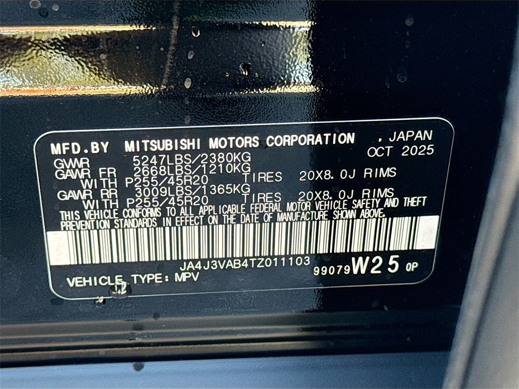 3rd row seats: split-bench, 4-Wheel Disc Brakes, 8 Speakers, ABS brakes, Air Conditioning, Alloy wheels, AM/FM radio: SiriusXM, Android Auto & Apple CarPlay, Auto High-beam Headlights, Auto-dimming Rear-View mirror, Automatic temperature control, Brake assist, Bumpers: body-color, Compass, Delay-off headlights, Driver door bin, Driver vanity mirror, Dual front impact airbags, Dual front side impact airbags, Electronic Stability Control, Emergency communication system: Mitsubishi Connect w/ 24-month trial, Exterior Parking Camera Rear, Four wheel independent suspension, Front anti-roll bar, Front Bucket Seats, Front Center Armrest w/Storage, Front dual zone A/C, Front fog lights, Front reading lights, Fully automatic headlights, Garage door transmitter: HomeLink, Heated door mirrors, Heated Front Bucket Seats, Heated front seats, Illuminated entry, Knee airbag, Leather Shift Knob, Leather steering wheel, Low tire pressure warning, Navigation System, Occupant sensing airbag, Outside temperature display, Overhead airbag, Overhead console, Panic alarm, Passenger door bin, Passenger vanity mirror, Power door mirrors, Power driver seat, Power Liftgate, Power steering, Power windows, Radio data system, Radio: AM/FM 12.3" Navigation with Smartphone-Link, Rain sensing wipers, Rear anti-roll bar, Rear seat center armrest, Rear side impact airbag, Rear window defroster, Rear window wiper, Reclining 3rd row seat, Remote keyless entry, Security system, Speed control, Speed-Sensitive Wipers, Split folding rear seat, Spoiler, Steering wheel mounted audio controls, Synthetic Leather Seating Surfaces, Tachometer, Telescoping steering wheel, Tilt steering wheel, Traction control, Trip computer, Turn signal indicator mirrors, Variably intermittent wipers, and Wheels: 20" Two-Tone Alloy. Price includes: $500 - Customer Cash. Exp. 03/02/2026 $2,000 Trade Assistance - Dealer Provided Rebate.