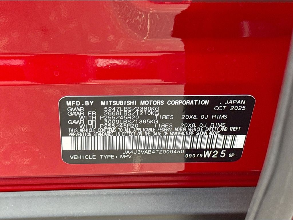 3rd row seats: split-bench, 4-Wheel Disc Brakes, 8 Speakers, ABS brakes, Air Conditioning, Alloy wheels, AM/FM radio: SiriusXM, Android Auto & Apple CarPlay, Auto High-beam Headlights, Auto-dimming Rear-View mirror, Automatic temperature control, Brake assist, Bumpers: body-color, Compass, Delay-off headlights, Driver door bin, Driver vanity mirror, Dual front impact airbags, Dual front side impact airbags, Electronic Stability Control, Emergency communication system: Mitsubishi Connect w/ 24-month trial, Exterior Parking Camera Rear, Four wheel independent suspension, Front anti-roll bar, Front Bucket Seats, Front Center Armrest w/Storage, Front dual zone A/C, Front fog lights, Front reading lights, Fully automatic headlights, Garage door transmitter: HomeLink, Heated door mirrors, Heated Front Bucket Seats, Heated front seats, Illuminated entry, Knee airbag, Leather Shift Knob, Leather steering wheel, Low tire pressure warning, Navigation System, Occupant sensing airbag, Outside temperature display, Overhead airbag, Overhead console, Panic alarm, Passenger door bin, Passenger vanity mirror, Power door mirrors, Power driver seat, Power Liftgate, Power steering, Power windows, Radio data system, Radio: AM/FM 12.3" Navigation with Smartphone-Link, Rain sensing wipers, Rear anti-roll bar, Rear seat center armrest, Rear side impact airbag, Rear window defroster, Rear window wiper, Reclining 3rd row seat, Remote keyless entry, Security system, Speed control, Speed-Sensitive Wipers, Split folding rear seat, Spoiler, Steering wheel mounted audio controls, Synthetic Leather Seating Surfaces, Tachometer, Telescoping steering wheel, Tilt steering wheel, Traction control, Trip computer, Turn signal indicator mirrors, Variably intermittent wipers, and Wheels: 20" Two-Tone Alloy. Price includes: $2000 - Customer Cash. Exp. 04/30/2026 $2,000 Trade Assistance - Dealer Provided Rebate.