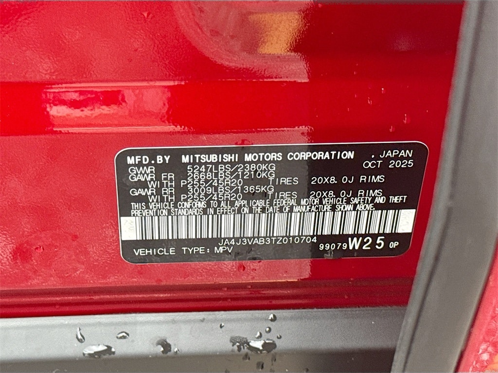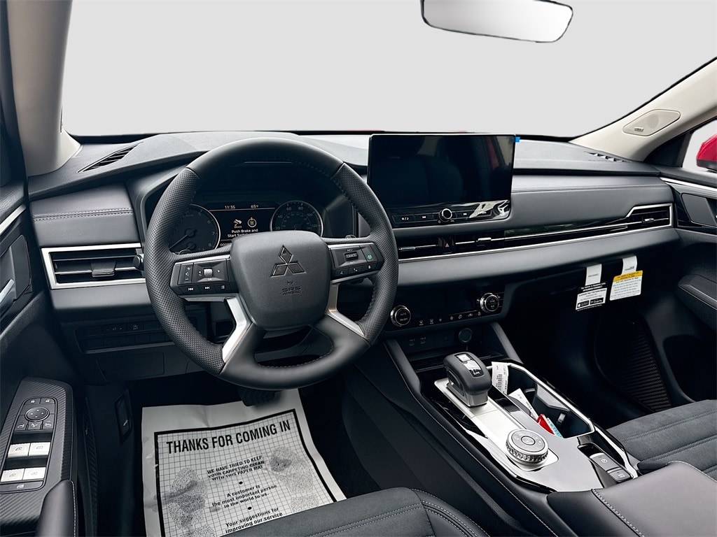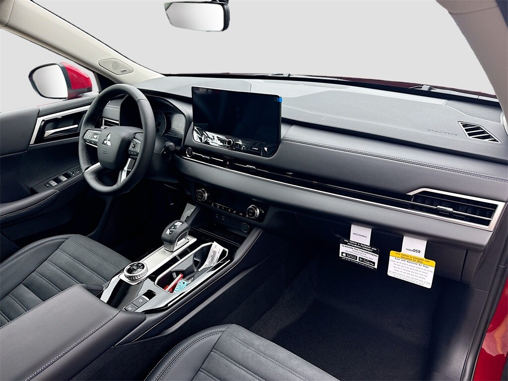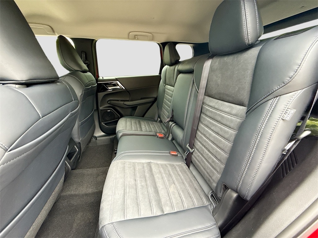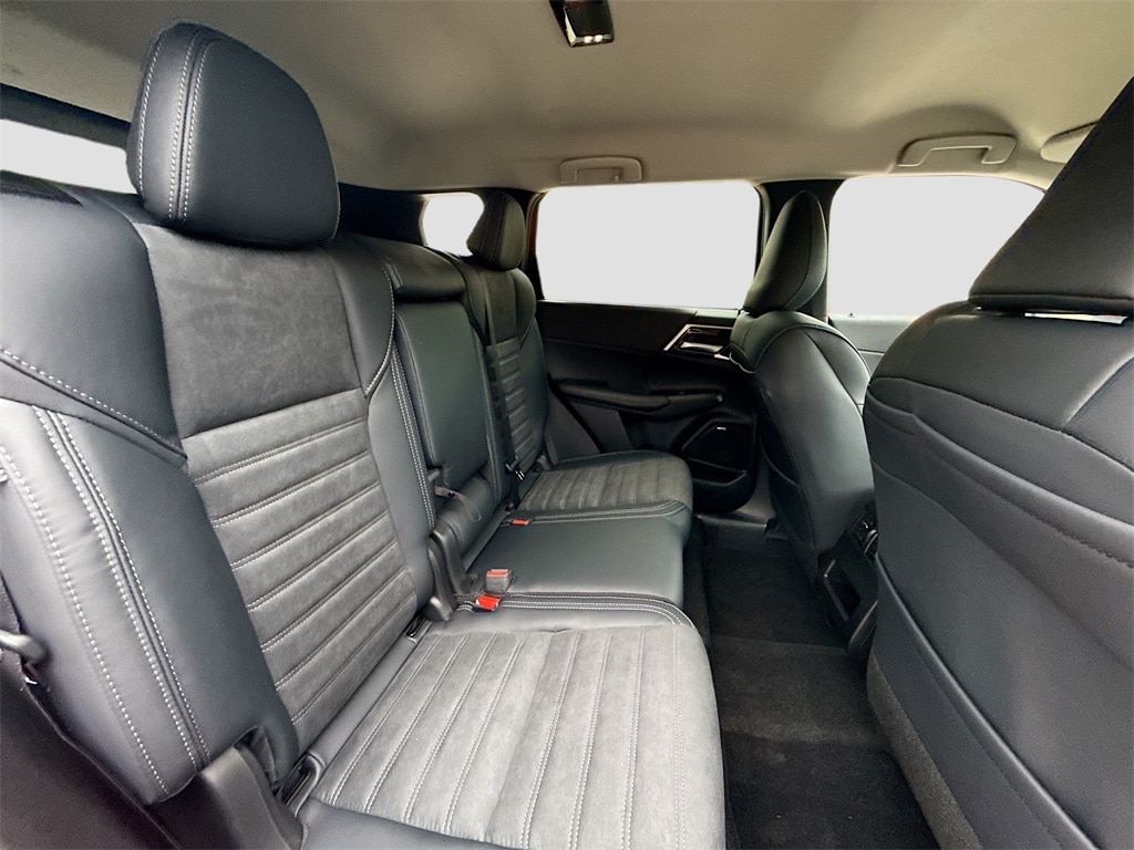3rd row seats: split-bench, 4-Wheel Disc Brakes, 8 Speakers, ABS brakes, Air Conditioning, Alloy wheels, AM/FM radio: SiriusXM, Android Auto & Apple CarPlay, Auto High-beam Headlights, Auto-dimming Rear-View mirror, Automatic temperature control, Brake assist, Bumpers: body-color, Driver door bin, Driver vanity mirror, Dual front impact airbags, Dual front side impact airbags, Electronic Stability Control, Emergency communication system: Mitsubishi Connect w/ 24-month trial, Exterior Parking Camera Rear, Four wheel independent suspension, Front anti-roll bar, Front Bucket Seats, Front Center Armrest w/Storage, Front dual zone A/C, Front fog lights, Front reading lights, Fully automatic headlights, Garage door transmitter: HomeLink, Heated door mirrors, Heated Front Bucket Seats, Heated front seats, Illuminated entry, Knee airbag, Leather Shift Knob, Leather steering wheel, Low tire pressure warning, Navigation System, Occupant sensing airbag, Outside temperature display, Overhead airbag, Overhead console, Panic alarm, Passenger door bin, Passenger vanity mirror, Power door mirrors, Power driver seat, Power Liftgate, Power steering, Power windows, Radio data system, Radio: AM/FM 12.3" Navigation w/Smartphone-Link, Rain sensing wipers, Rear anti-roll bar, Rear seat center armrest, Rear side impact airbag, Rear window defroster, Rear window wiper, Reclining 3rd row seat, Remote keyless entry, Security system, Speed control, Speed-Sensitive Wipers, Split folding rear seat, Spoiler, Steering wheel mounted audio controls, Synthetic Leather Seating Surfaces, Tachometer, Telescoping steering wheel, Tilt steering wheel, Traction control, Trip computer, Turn signal indicator mirrors, Variably intermittent wipers, and Wheels: 20" Two-Tone Alloy.