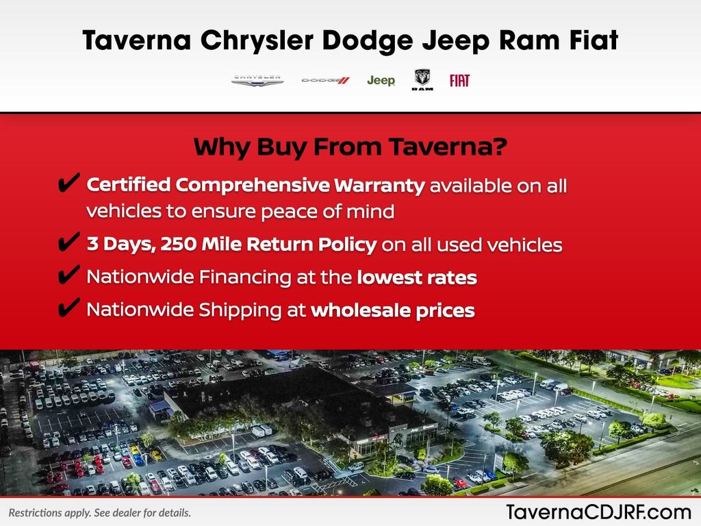 We are a factory authorized Chrysler, Dodge, Jeep, Ram, and Fiat dealership selling new and used vehicles along with service. We offer nationwide financing for our customers with rates as low as 0.9%! We also ship nationwide at wholesale rates, lower than any broker - and we offer extended warranties for protection after the sale. Please ask us for a full walkaround or FaceTime video for full peace of mind.